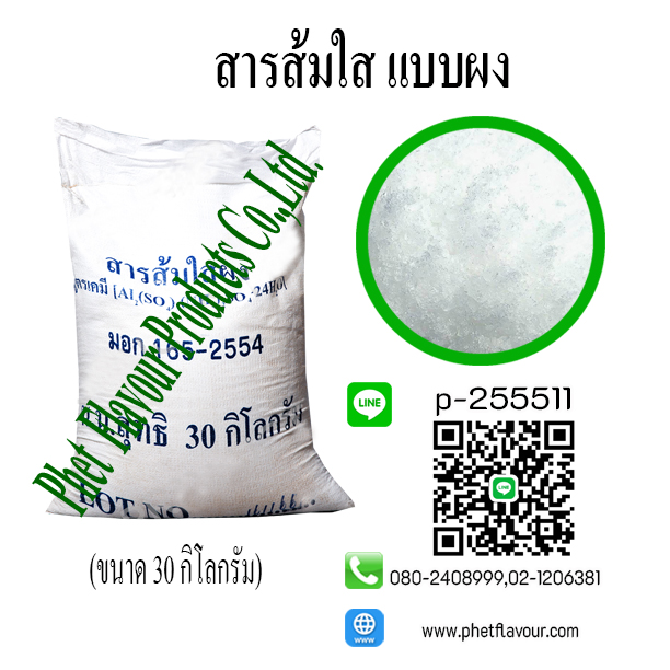 สารส้มใส เป็นสารเคมีที่ไม่มีสี ไม่มีกลิ่น ไม่มีอันตรายหรือสารตกค้าง ในอุตสาหกรรมอาหาร นิยมใช้ในการดองผัก เพื่อให้ผักผลไม้มีความกรอบ ช่วยทำให้พริกขี้หนูมีสีสดใส ทำให้ข้าวเหนียวมีเมล็ดสวย นอกเหนือจากนั้นยังนิยมนำมาใช้ดับกลิ่นใต้วงแขนที่ได้ประสิทธิภาพสูงอีกด้วย รายละเอียด สารส้มใช้ทำให้น้ำตกตะกอนสำคัญ อย่าลืมซื้อพกติดตัวกันไว้สัก 2-3 ก้อน ถึงน้ำที่แกว่งสารส้มแล้วจะยังใช้ดื่มไม่ได้ แต่ก็นำมาใช้อาบน้ำ ซักเสื้อผ้า ล้างจานชามได้และน้ำที่แกว่งสารส้มแล้วสามารถนำมาต้มฆ่าเชื้อโรค แล้วนำมาใช้ดื่ม หรือทำอาหารรับประทานได้ ถ้าไม่แน่ใจว่าจะสะอาดพอหรือยังก็ควรนำน้ำที่แกว่งสารส้มแล้ว มาผ่านเครื่องกรองน้ำอีกชั้นหนึ่ง ประโยชน์ สารส้มนำไปใช้ประโยชน์ได้อย่างกว้างขวางทั้งในอุตสาหกรรมและที่เกี่ยวข้องกับผิวหนังของคน กล่าวคือ 1 การใช้ประโยชน์ในอุตสาหกรรม ส่วนมากจะใช้ในอุตสาหรรมการประปา รองลง มาได้แก่ อุตสาหกรรมกระดาษ ย้อมผ้า ฟอกหนัง ผสมเป็นยาดับเพลิง สารดับกลิ่น ฟอกสี และ ผสมทำผงฟูใช้ในการทำขนมปัง เป็นต้น 2 การใช้เกี่ยวข้องกับผิวหนัง ใช้ดับกลิ่นตัวได้ทุกส่วนของร่างกายตามที่ต้องการ โดยเฉพาะที่ใต้วงแขน ( รักแร้ ) และ เท้า สามารถระงับ กลิ่นได้ 100 % นานถึง 24 ช.ม และหน่วงการเกิดกลิ่นได้ไม่ต่ำกว่า 10 ช.ม ใช้ทาหลังโกนหนวดจะไม่ทำให้เกิดการระคายเคือง ช่วยห้ามเลือดและสมานบาดแผลที่เกิดจากมีดโกนบาด หรือ บาดแผลเล็กน้อย ใช้ทาที่ส้นเท้าจะรักษาและป้องกันส้นเท้าแตก ทาแก้คันตามผิวหนังเมื่อถูกยุงกัดหรือคันจากสาเหตุอื่น