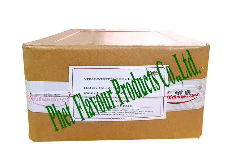 แอซีซัลเฟม เค เป็นสารให้ความหวานแทนน้ำตาลที่ให้รสหวานกว่าน้ำตาลถึง 200 เท่าเช่นเดียวกับแอสพาร์เทม โดย 2 ใน 3 ส่วนให้ความหวานเหมือนแซคคาริน และที่เหลือให้ความหวานเหมือนซูคาโรส แอซีซัลเฟม เค จะมีรสขมหลังการชิมเล็กน้อยเหมือนแซคคาริน โดยเฉพาะที่ความเข้มข้นสูง แต่ก็มีการคิดค้นวิธีการแก้รสขมดังกล่าวได้ โดยใช้ sodium ferulate เป็นตัวกลบ เมื่อนำแอซีซัลเฟม เคไปผสมรวมกับสารให้ความหวานชนิดอื่น เช่น ซูคาโรส แอสพาร์เทม เป็นต้น ซึ่งการผสมนี้จะสามารถช่วยให้มีความหวานเหมือนซูโครสได้โดยการใช้รสของสารให้ความหวานชนิดอื่นกลบรสขมของแอซีซัลเฟม เค ได้