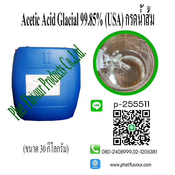 ประโยชน์กรดอะซิติก 1. เป็นวัตถุดิบผลิตน้ำส้มสายชู 2. ใช้เป็นสารเคมีสำคัญในการทำปฏิกิริยาเคมีในกระบวนการผลิตสารอนุพันธ์ของกรดอะซิติก 3. ด้านอาหาร กรดอะซิติก ถูกใช้เป็นส่วนผสมในอาหารเพื่อป้องกันการเติบโตของเชื้อจุลินทรีย์ที่เป็นสาเหตุทำให้อาหารบูดเน่า ใช้เพื่อปรับความเป็นกรด-ด่างของอาหาร และช่วยยืดอายุการเก็บรักษาอาหาร นอกจากนั้น ยังใช้เพื่อการเพิ่มรสเปรี้ยวในอาหารเป็นสำคัญ ทั้งนี้ ขึ้นอยู่กับชนิดของอาหารที่ต้องการรสเปรี้ยวมากหรือน้อย หากใช้ความเข้มข้นมากจะทำให้เกิดรสเปรี้ยวมาก อาหารที่มีการใช้กรดอะซิติก ได้แก่ น้ำสลัด ผักดอง ผลไม้ดอง และซอสชนิดต่างๆ เป็นต้น 4. ด้านการเกษตร กรดอะซิติก ถูกใช้เป็นส่วนผสมของน้ำยาควบคุมเชื้อรา น้ำหมักชีวภาพ หรือผสมน้ำฉีดพ่น เพื่อใช้ควบคุมเชื้อราในแปลงผัก และผลไม้ 5. ด้านการแพทย์ กรดอะซิติกเข้มข้นถูกนำมาใช้ในทางการแพทย์ โดยนำกรดอะซิติกมาเจือจางร่วมกับสารประกอบอื่น ได้แก่ – สารประกอบโพรไพลีน ไกลคอล (Propylene Glycol) – สารละลายอะลูมิเนียม อะซิเตรท (Aluminium Acetate) – สารละลายกรดบอริก (Boric Acid) – สารละลายโซเดียมไฮดรอกไซด์ (Sodium Hydroxide) – สารละลายอะลูมิเนียมซัลเฟต (Aluminium Sulfate) – สารละลายแคลเซียมคาร์บอเนต (Calcium Carbonate ) – น้ำบริสุทธิ์