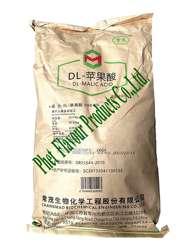รสชาติเปรี้ยวของกรดมาลิค ( Malic Acid ) มีความแตกต่างจากรสชาติเปรี้ยวของกรดซิตริก ( Citric Acid ) โดยกรดมาลิคจะมีความเปรี้ยวคล้ายกับน้ำผลไม้ประเภทต่างๆ ที่มีรสเปรี้ยว ในขณะที่กรดซิตริกจะมีความเปรี้ยวแบบน้ำมะนาว ดังนั้น รสชาติเปรี้ยวที่ได้จากกรดมาลิค จึงมีความแตกต่างจากกรดซิตริก